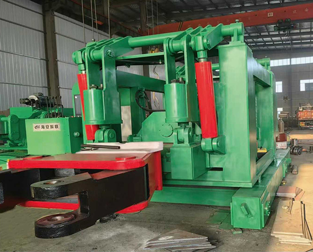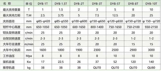 该操作机适用于配合自由锻锤进行锻造操作,具备5种功能:钳头加持/松开,夹钳沿中心轴线360°连续旋转,钳架前升/降,钳架后升/降车体沿轨道前后行走,台架旋转。