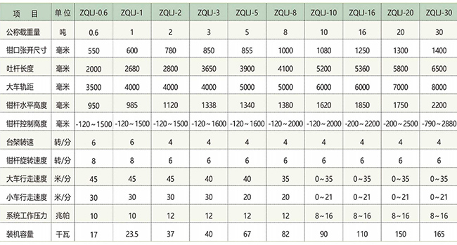 该系列装取料机能够从地面夹持工件,方便地将工件送入加热炉;同时,能够将加热好的工件从加热炉内取出,并迅速送至锻锤、压机或辗环机等锻压设备上,并且能够辅助做一些简单的操作。如上下马架、砧座,捡拾料头等。该装取料机具备七种功能:大车行走、小车行走、小车回转、钳杆仰俯、钳杆伸缩、夹钳旋转、夹钳夹紧。