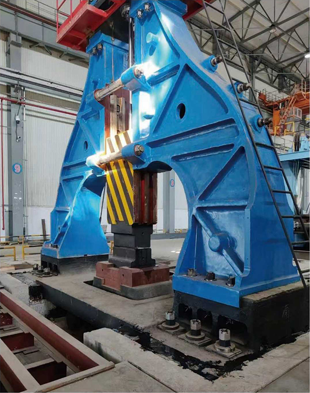全液压自由锻锤是指锤头的打击和回程均为液压驱动的自由锻锤。系统原理为锤杆活塞下腔常通高压油,通过控制活塞上腔油压来实现打击和回程。全液压自由锻锤具有能量足、频次快、故障率低、可以实现任意位置悬锤等优点。